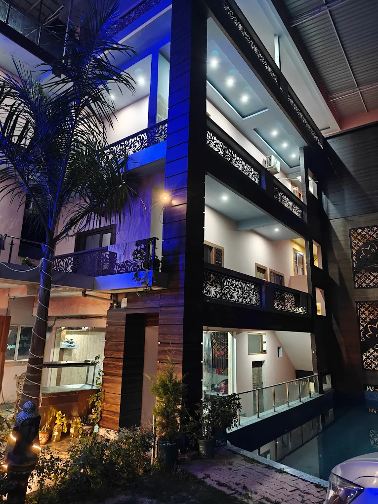 Nearest airport: Dehradun (Jolly Grant) is the closest; you can arrange airport pick-ups/taxis from there. Trains run to Rishikesh / Haridwar. From Rishikesh town, AYM is in Tapovan / Upper Tapovan, near riverbanks / main yoga-ashram zones.