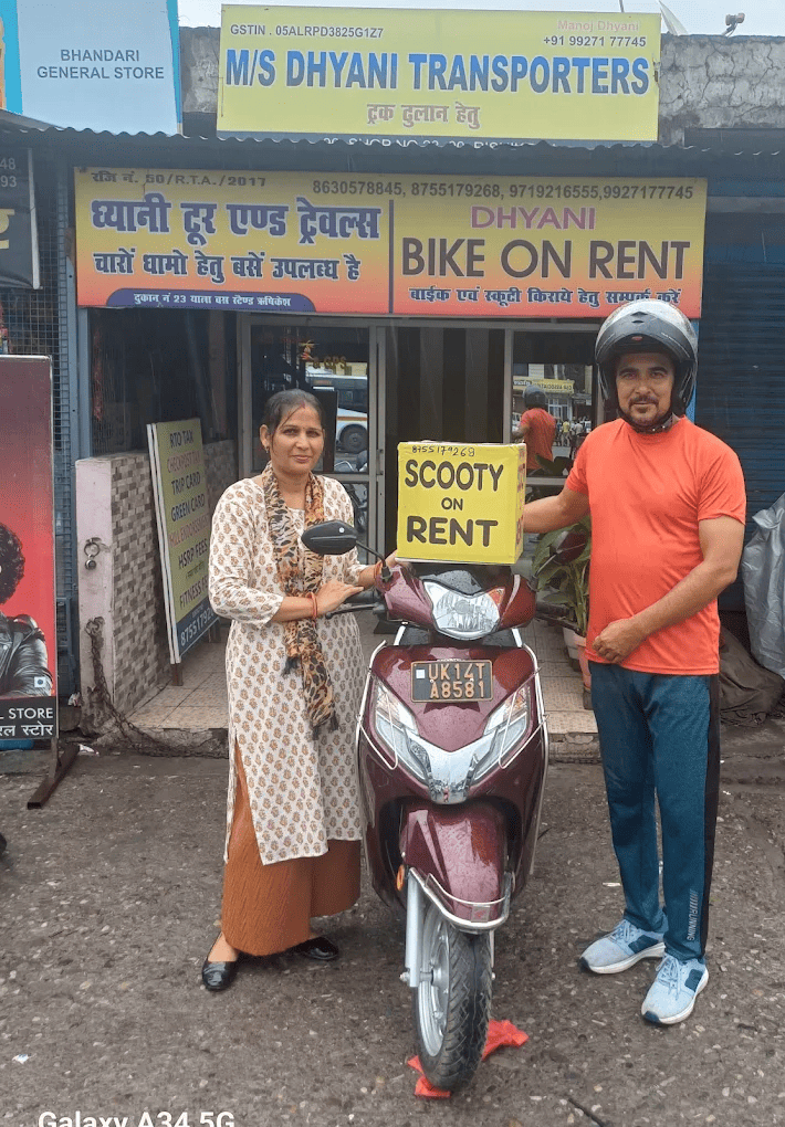 Dhyani Bike / Scooty on Rent is a local two-wheeler rental service in Rishikesh. They specialize in 125-cc Honda Activa scooties, ideal for city travel and light routes. Their shop is located at the Local Bus Stand, ISBT, Rishikesh. With 5.0 rating from 27 reviews, they are trusted by travellers for clean, functional scooties and transparent service.
