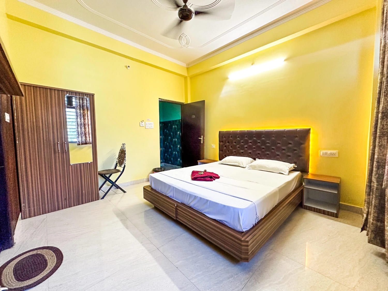 Clean, well-ventilated rooms with attached bathrooms, both shared and private. Yoga halls are spacious. Amenities include filtered drinking water, hot/cold running water, laundry, WiFi. Location offers both peace and access to nearby utilities (shops, cafés, etc.).
